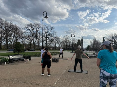 Dancing to Raye’s “Where the Hell is my Husband” on full blast at an outdoor Zumba class in Highland Park with people of all sizes, ages, and races. Such a beautiful celebration of spring!