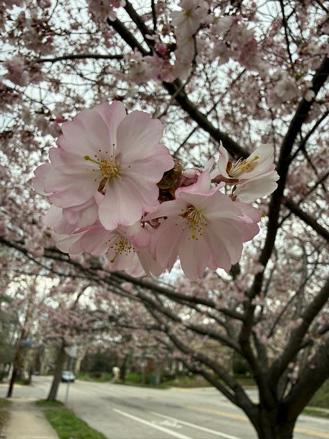 Admiring the beautiful cherry blossoms in Pittsburgh.